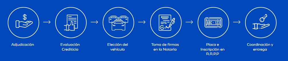 Una vez que tu contrato sea adjudicado, podrás iniciar el proceso de adquisición de tu vehículo. Tu Funcionario de Servicios y Ventas te acompañará en cada etapa hasta la entrega final.