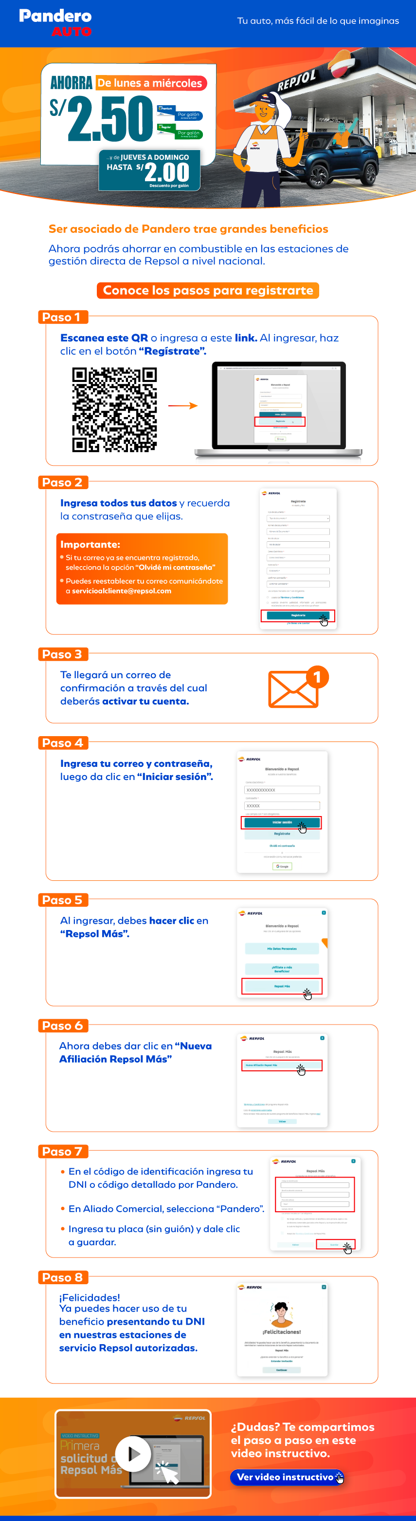 1. Cuando tengas la placa de tu vehículo, ingresa al módulo de Repsol y regístrate.